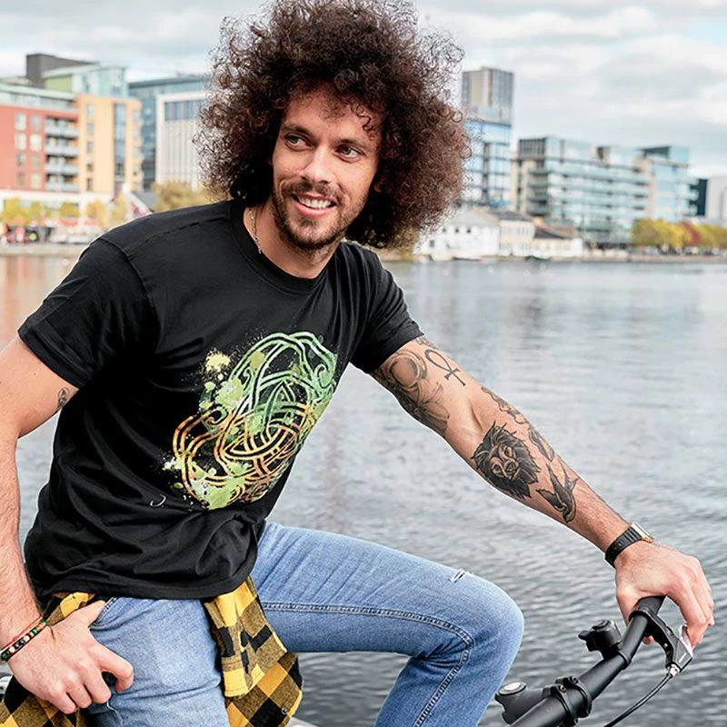 Crew neck t-shirt featuring a traditional Celtic knot design with a colourful modern twist. Made from 100% cotton that’s naturally breathable and soft for a comfortable wear.
