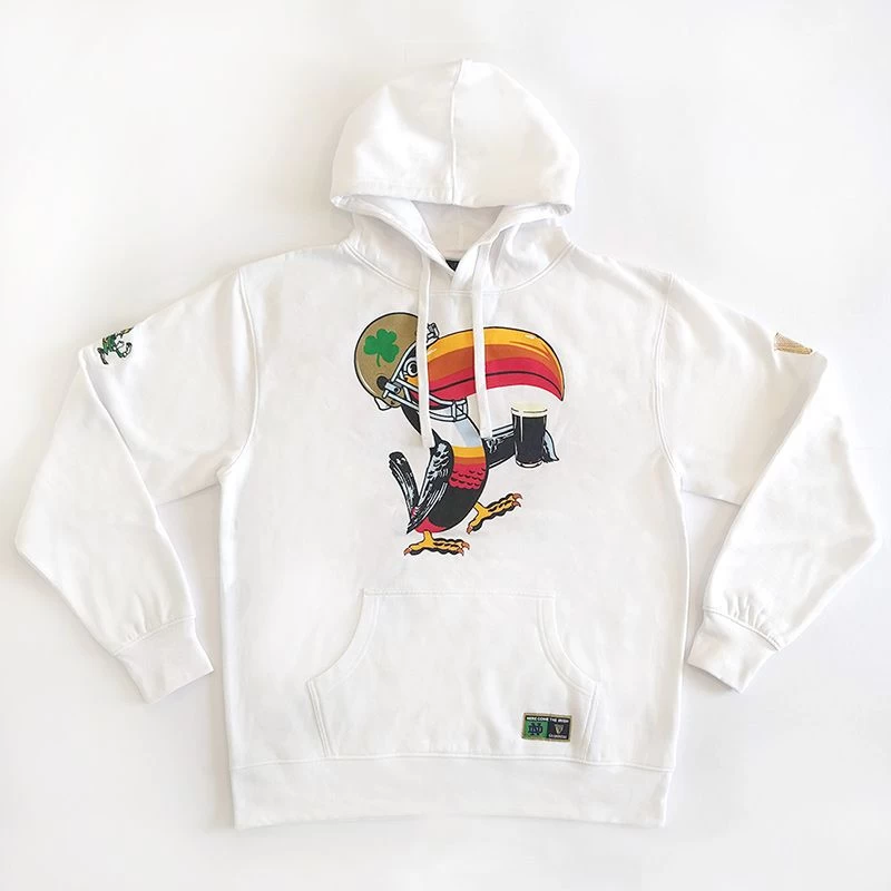 Cheer on the Fighting Irish with the Guinness Notre Dame Toucan hoodie, featuring print Toucan graphic on the front and embroidered Notre Dame Fighting Irish and Guinness logos on the sleeves.
