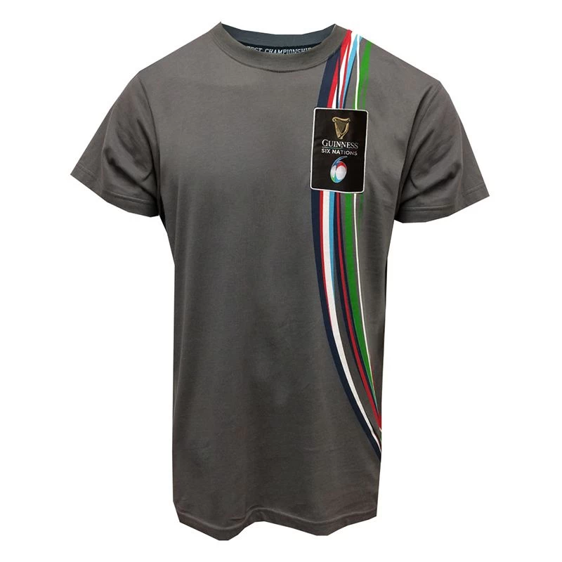 This Guinness t-shirt features a woven patch on the chest with printed swoosh detail running vertical. Part of the Official Guinness Six Nations Clothing Collection.