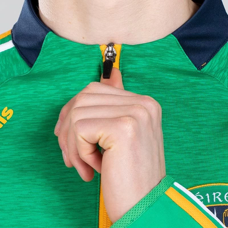 Pull on an extra layer with the Men’s Ohio Éire Brushed Half Zip Top. The soft brushed inner and high flex outer provide warmth and comfort, while the two zip pockets are ideal for keeping your belongings safe. Complete with Éire crest on the chest and stripe detail on the sleeve.
