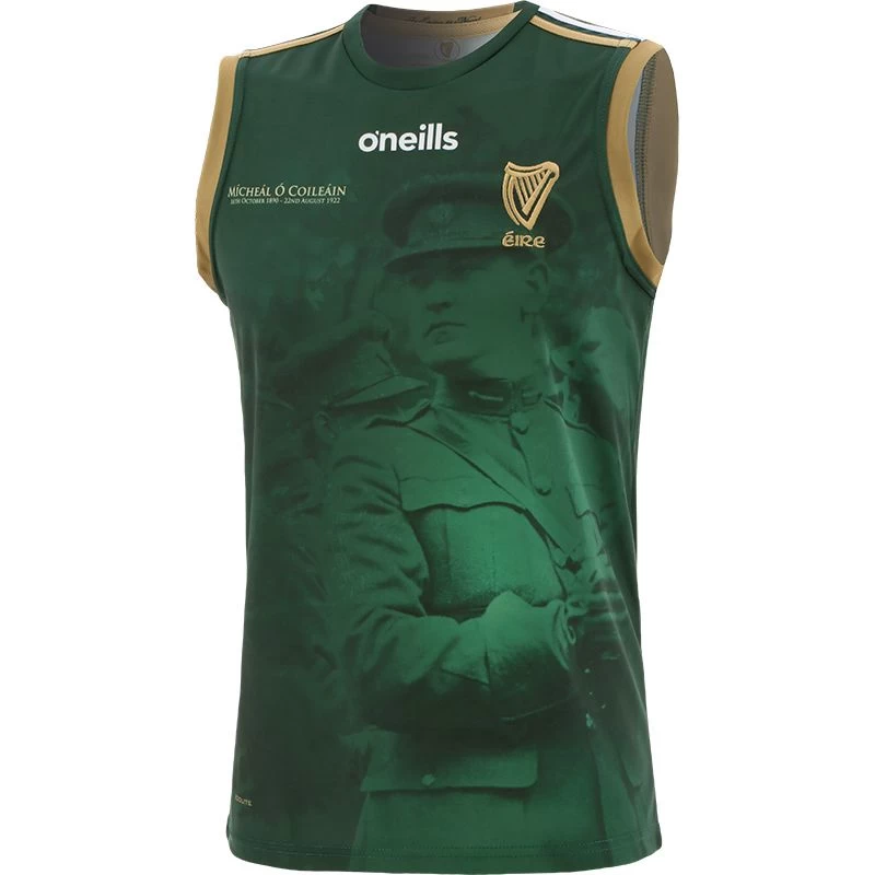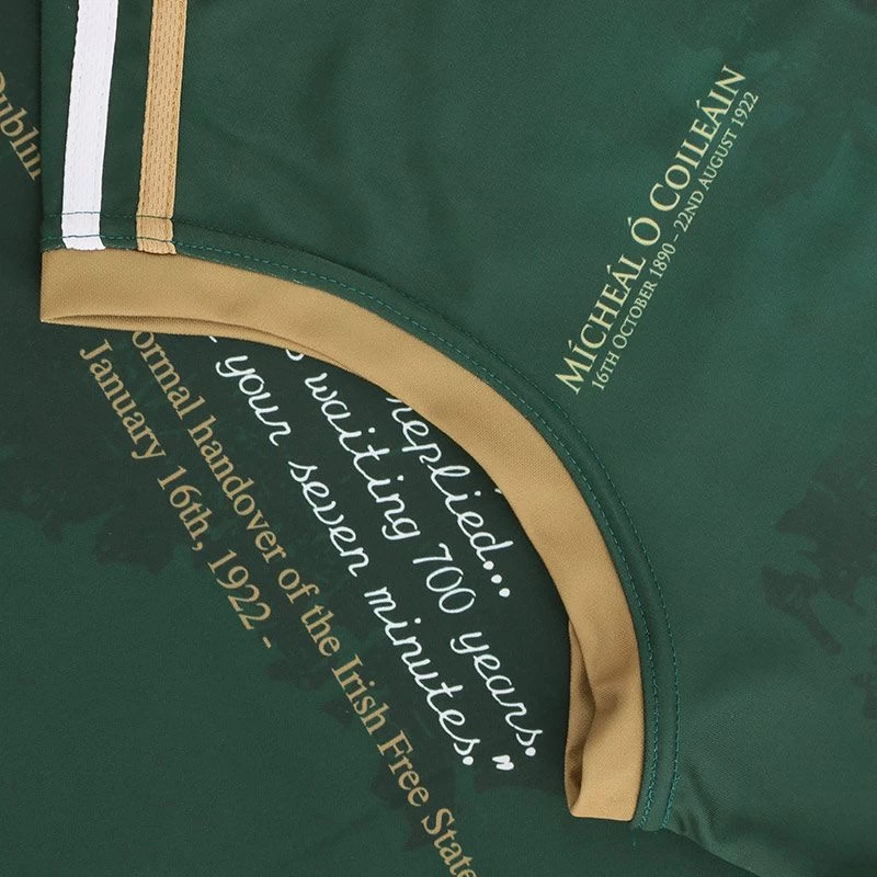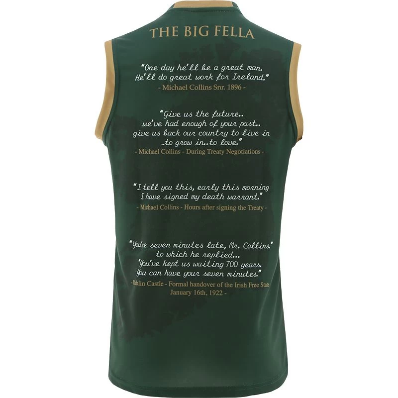 The Michael Collins Commemoration Vest features a portrait of Michael Collins on the front with some of the most famous quotes from “The Big Fella” detailed on the back of the jersey. The sleeveless vest pays tribute to the Irish revolutionary, soldier, and politician. Show your Irish pride with the Michael Collins Commemoration vest!